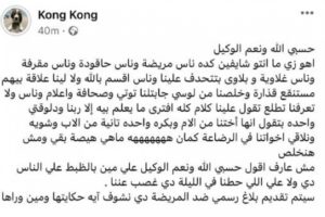 وكتب محمد عبد الوهاب، منشورًا عبر حسابه الشخصي بموقع التواصل الاجتماعي فيسبوك، وقال: “حسبي الله ونِعم الوكيل… أهو زي ما أنتوا شايفين كده ناس مريضة وحقودة ومقرفة وغلاوية وبلاوي بتتحدف علينا، وناس أقسم بالله ولا لينا علاقة بيهم مستنقع قذارة”.